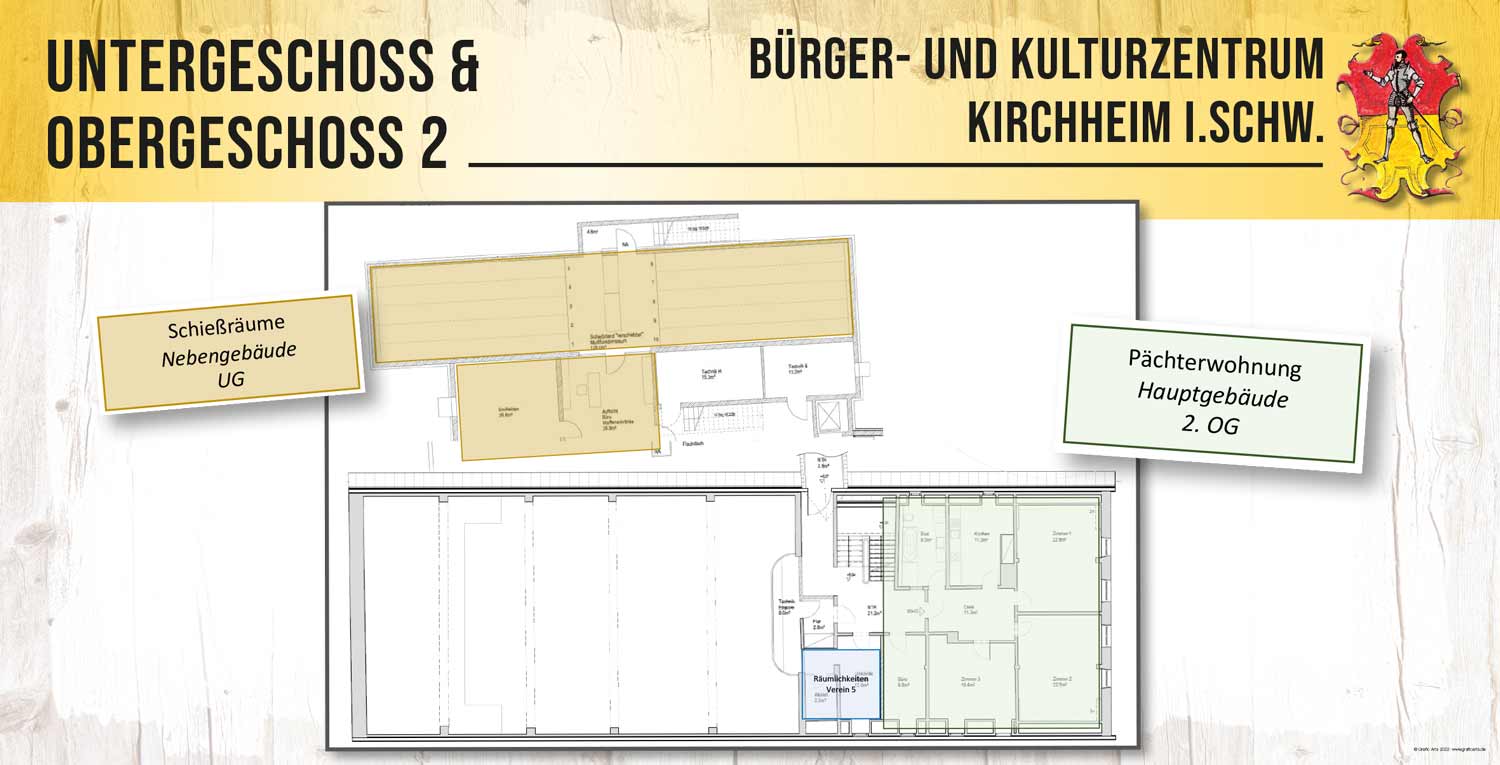 Zudem befinden sich im OG ein Bürgersaal mit 126 m2 mit angrenzenden WC-Anlagen sowie Umkleiden, Büroräume, eine Satellitenküche und Lagerräume.